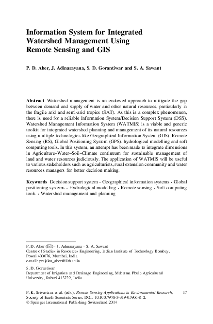 Integrated watershed management programme (iwmp) is implemented by department of land resources of ministry of rural development. In india, more than half of the population still depends on agriculture for their livelihood. A national consortium comprising ministry of agriculture, gtz, international crops research institute for. Watershed management in india can be traced back to the efforts of anna hazare in ralegaon.